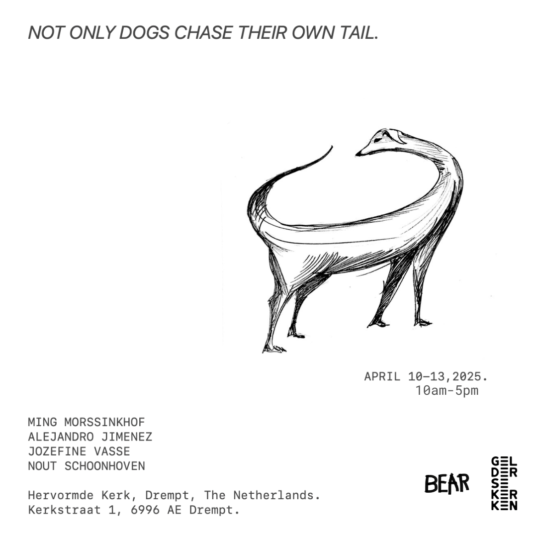 Onder de titel Not Only Dogs Chase Their Own Tail exposeren vier ArtEZ-studenten in de Sint-Joriskerk in Drempt. Alejandro Jimenez, Nout Schoonhoven, Ming Morssinkhof en ... Lees meer