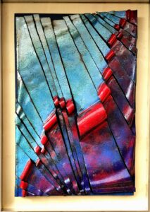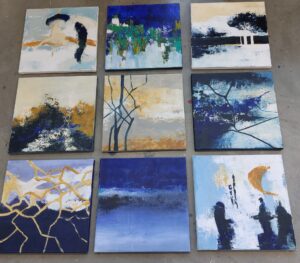 Julia de Bont- Joosen exposeert abstracte schilderijen waar hier en daar een landschap in te ontdekken is. De techniek is acrylverf op doek.