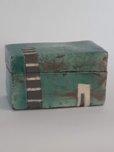Mieke Kaaijk heeft al 45 jaar belangstelling voor Keramiek. Waardoor draiien en handvormen, ze maakt figuratief en abstract werk. De afwerking is divers. De ene keer ruw, glad of hoog gepolijst. Mieke gebruikt verschillende stooktechnieken, raku, pitfire en kapselbrand. De laatste jaren heeft Raku haar voorkeur, ze maakt herinnering dozen, huisjes en wandobjecten.